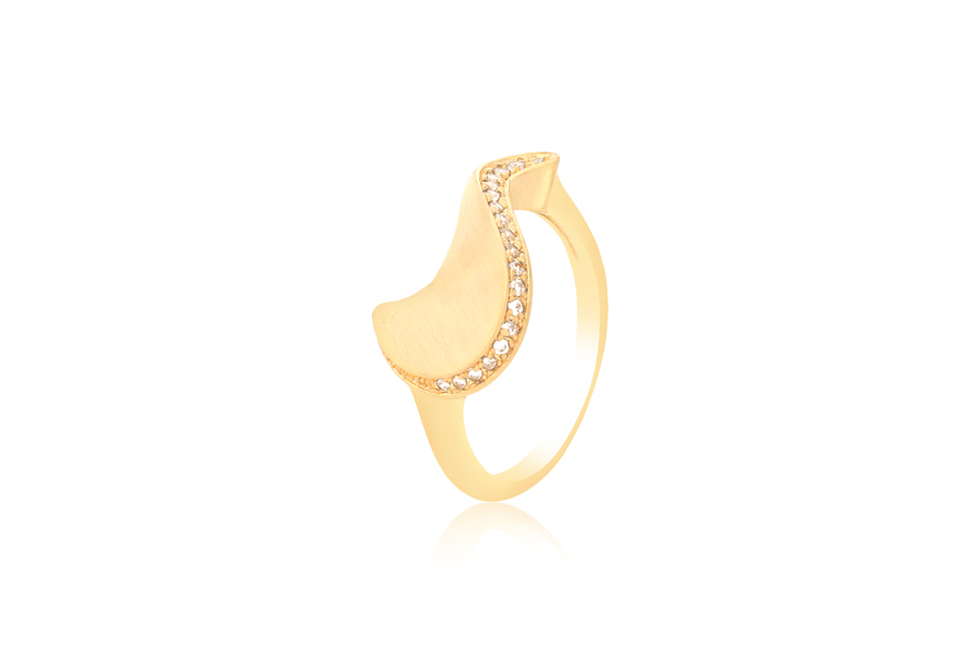 ANEL BANHADO EM OURO, 4,30mm LARGURA, EM ZIRCÔNIAS NAVETE