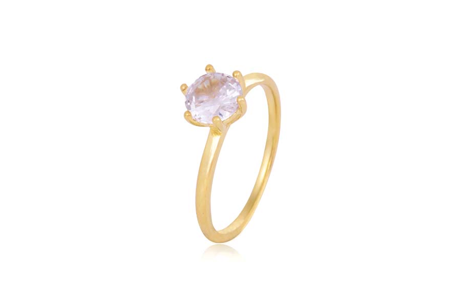 ANEL BANHADO EM OURO, FLOR CRAVEJADA E CRISTAL OVAL 5,70mm LARGURA