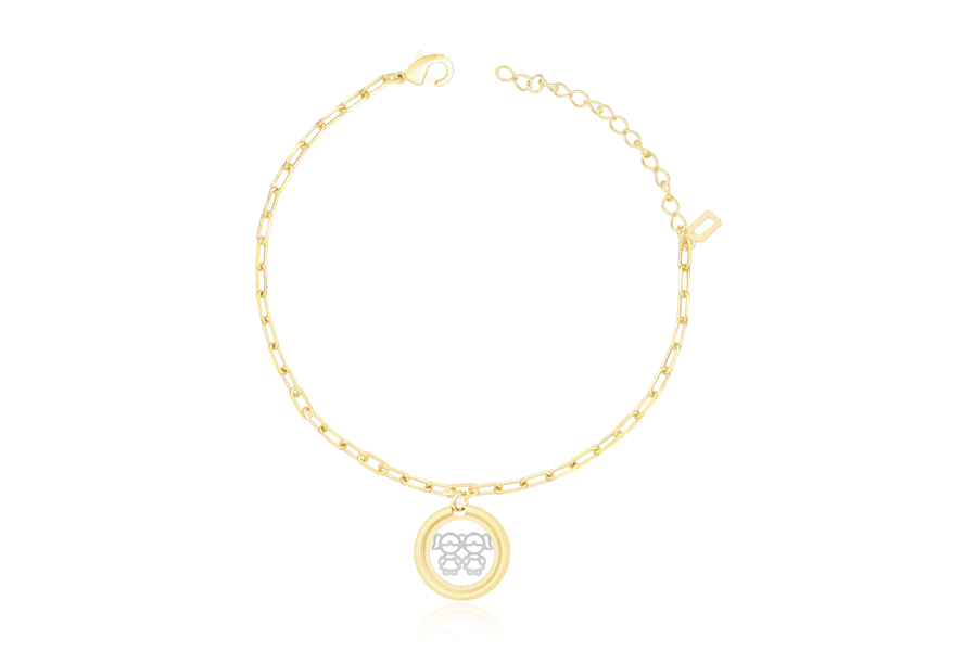 PULSEIRA BANHADA EM OURO, ELO CARTIER 5,10x2,20mm, 16cm COMPRIMENTO, EXTENSOR 5cm E DUAS MENINAS 15mm DIÂMETRO