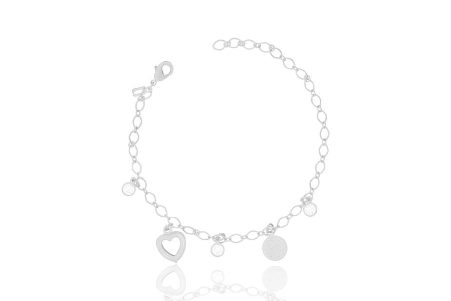 PULSEIRA BANHADA EM RÓDIO BRANCO, ELO PORTUGUÊS 2,50mm, 16cm COMPRIMENTO, EXTENSOR 5cm COMPRIMENTO, PONTO DE LUZ, GRATIDÃO E AMOR 12mm DIÂMETRO