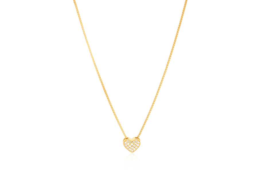 CHOKER BANHADA EM OURO, ELO VENEZIANA 0,80mm, 37cm COMPRIMENTO, EXTENSOR 5cm COMPRIMENTO E CORAÇÃO 7mm ALTURA