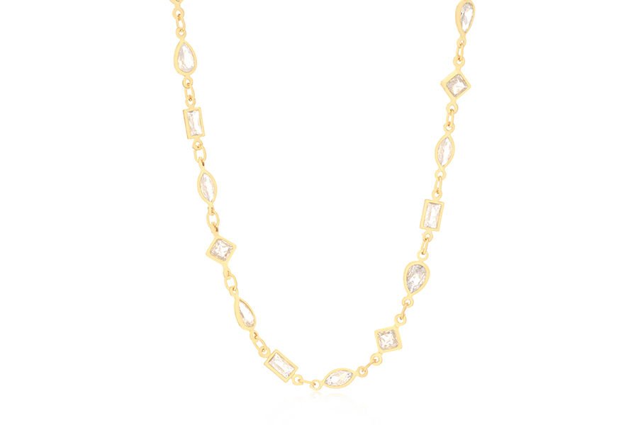 GARGANTILHA BANHADA EM OURO, ELO ZIRCÔNIAS BAGUETE, GOTA, NAVETE E QUADRADO, 45cm COMPRIMENTO E EXTENSOR 5cm COMPRIMENTO