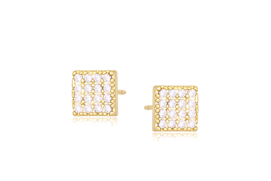 BRINCO BANHADO EM OURO, CRISTAL QUADRADO 12mm, COLEÇÃO INTENSE COLORS