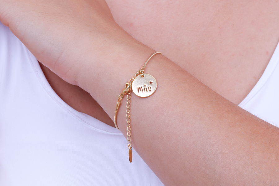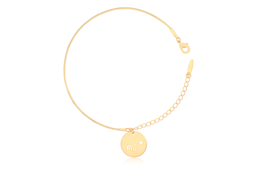 PULSEIRA BANHADA EM OURO, ELO PORTUGUÊS 3mm, ELO CORAÇÃO 4,20mm LARGURA, PINGENTE CORAÇÃO 11mm LARGURA COM MENINA