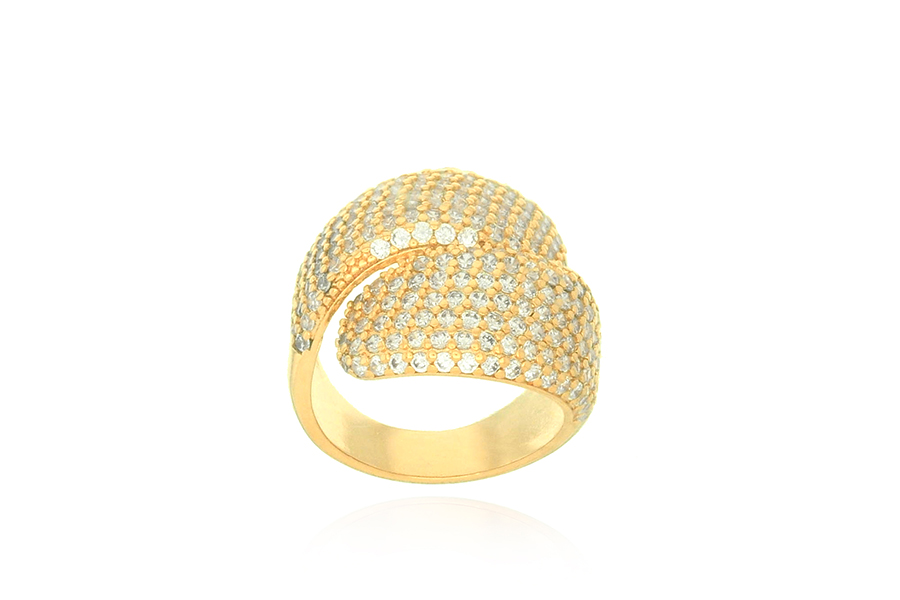 ANEL BANHADO EM OURO, 4,30mm LARGURA, EM ZIRCÔNIAS NAVETE